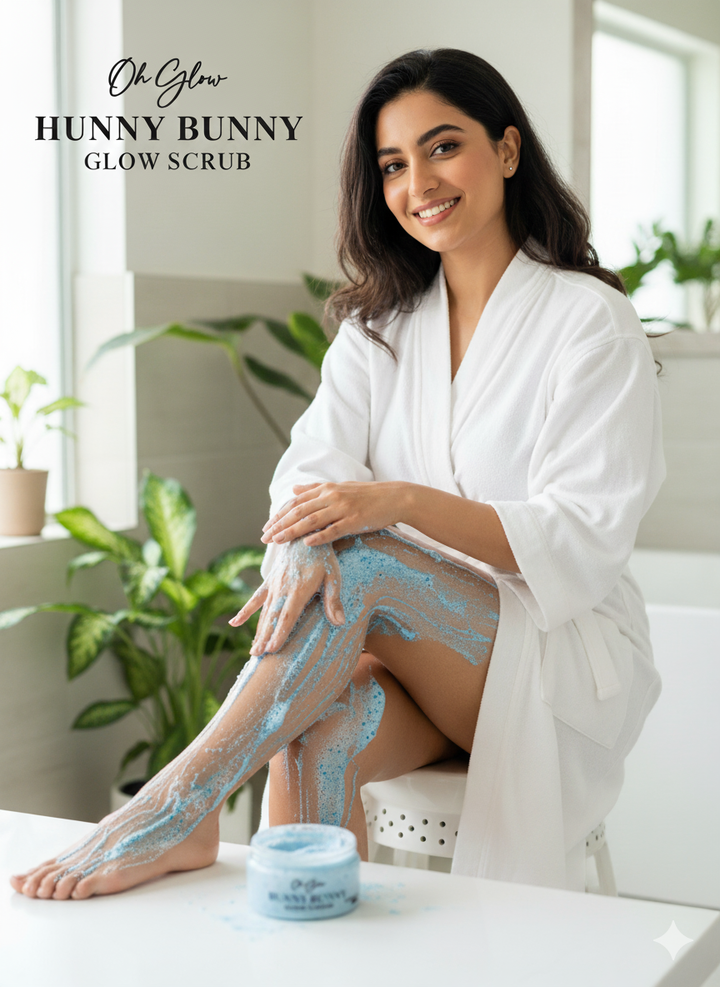 Apply an appropriate amount of our Hunny Bunny Scrub to your hands. Gently massage the scrub using your fingertips onto damp skin. Continue massaging for 5 minutes to get a healthy lather and perfect exfoliation. Rinse the skin with lukewarm water and then you can apply Ohh Glow Hands & Feet Cream. For best results use it on every alternative day.